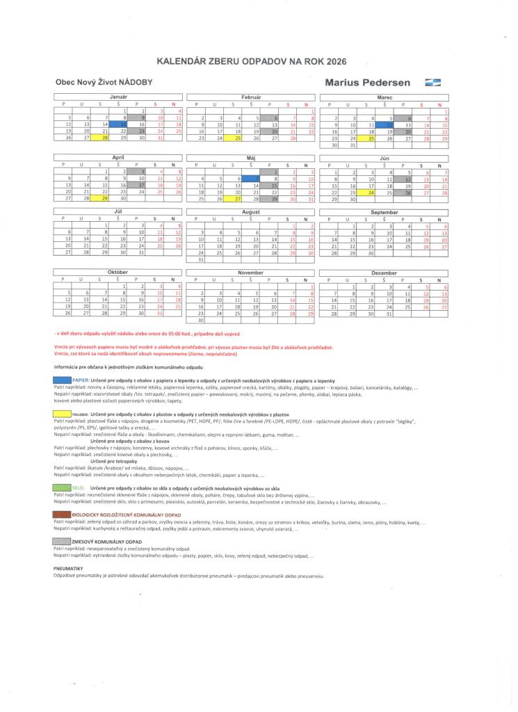 Kalendár zberu odpadov na rok 2026 - 1. polrok Typ: PDF dokument, Veľkosť: 329.96 kB