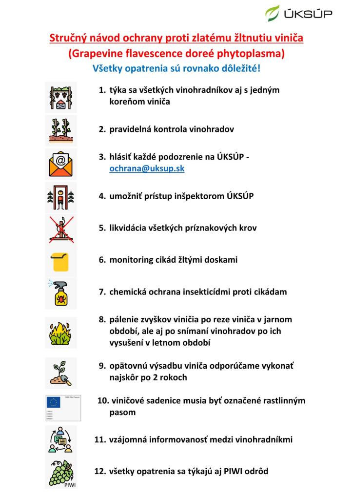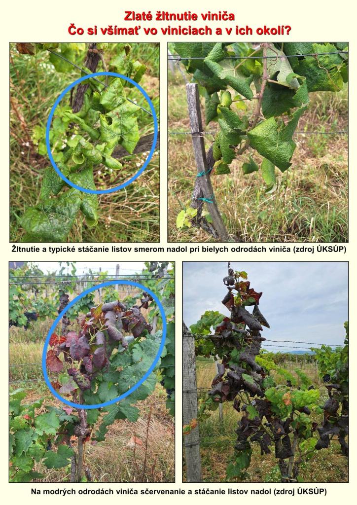 Vzhľadom na rýchly nárast viditeľných príznakov karanténnej choroby viniča s názvom zlaté žltnutia viniča (Grapevine flavescence dorée phytoplasma), Vám odbor ochrany rastlín Ústredného kontrolného a skúšobného ústavu poľnohospodárskeho v Bratislave zasiela naliehavé informácie na zamedzenie šírenia tejto choroby.